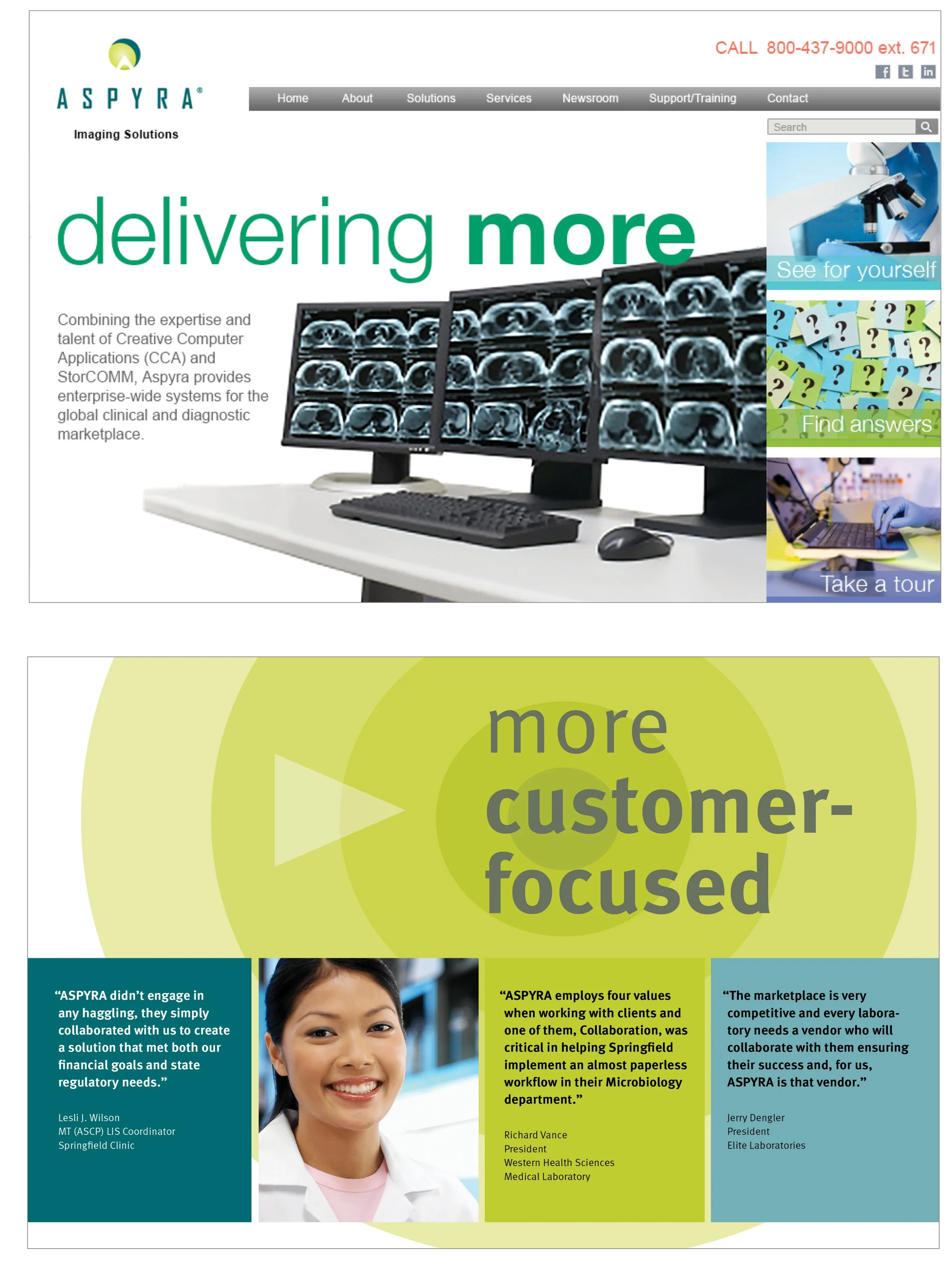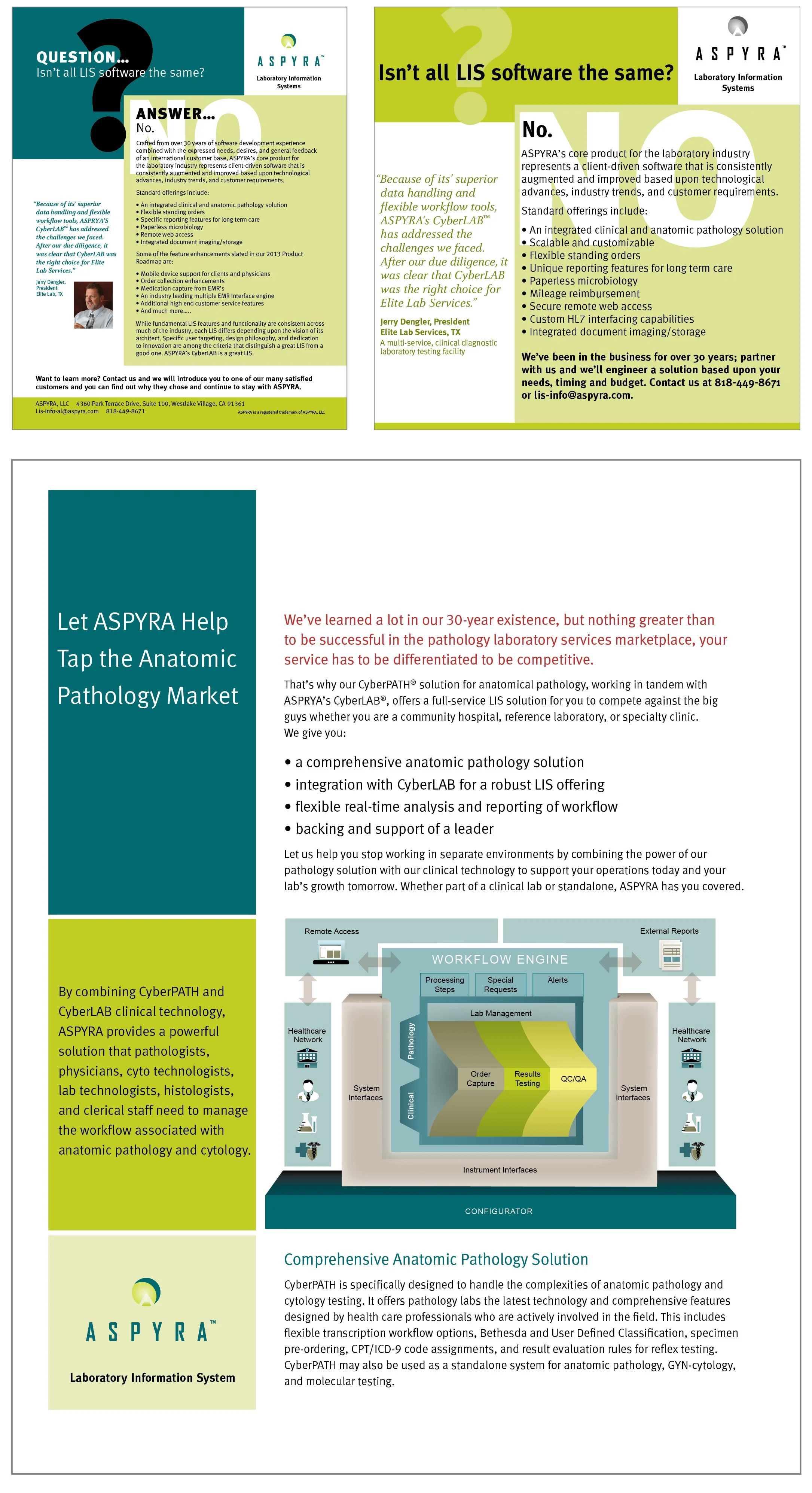 In collaboration with Aspyra’s communications manager, I developed cohesive messaging and visual systems to bring clarity to the new brand. Deliverables included a redesigned website, one-sheets, brochures, PowerPoint presentations, and advertisements—clearly communicating the value and enhanced offerings of the merged organization.