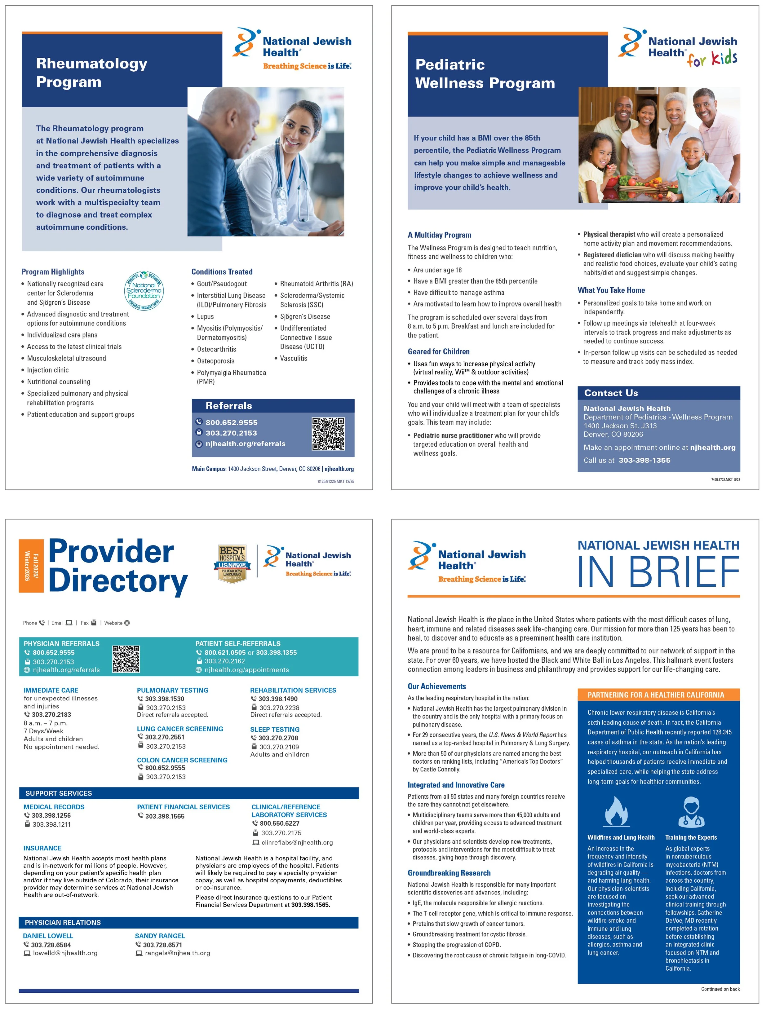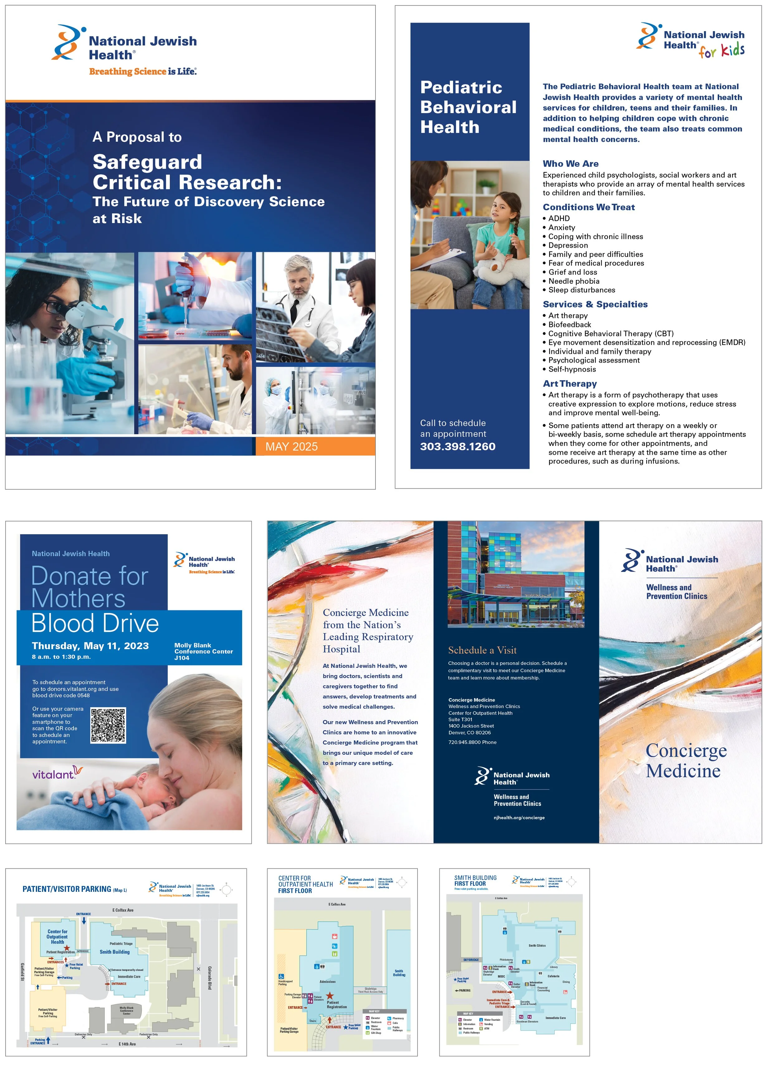 As a leading respiratory hospital and research institution, National Jewish Health occupies a unique position in the market. While maintaining a professional tone, consistent fonts, and color palette, the organization’s branding is tailored to its various audiences: patients, researchers and physicians, and donors.