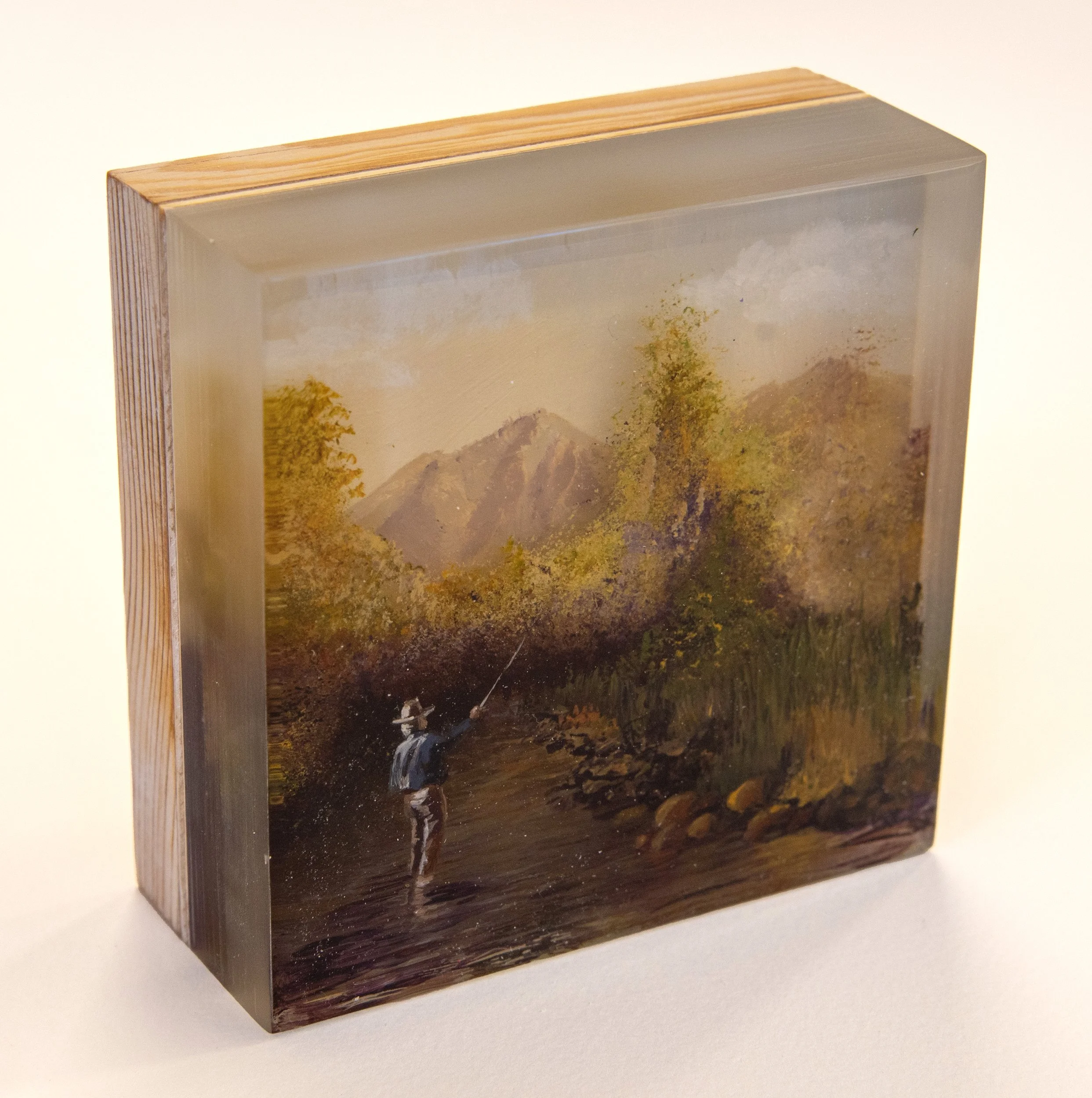 Created with layers of resin, and acrylic paint.